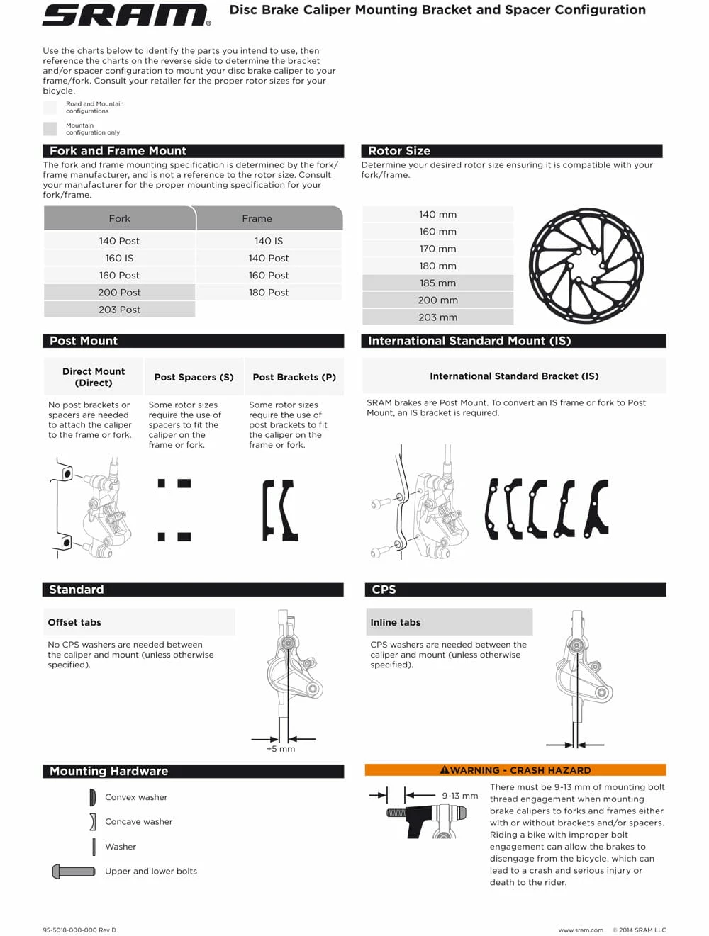Met deze adapters kunnen de Avid remklauwen op verschillende rembevestigingen van frames en vorken worden bevestigd.